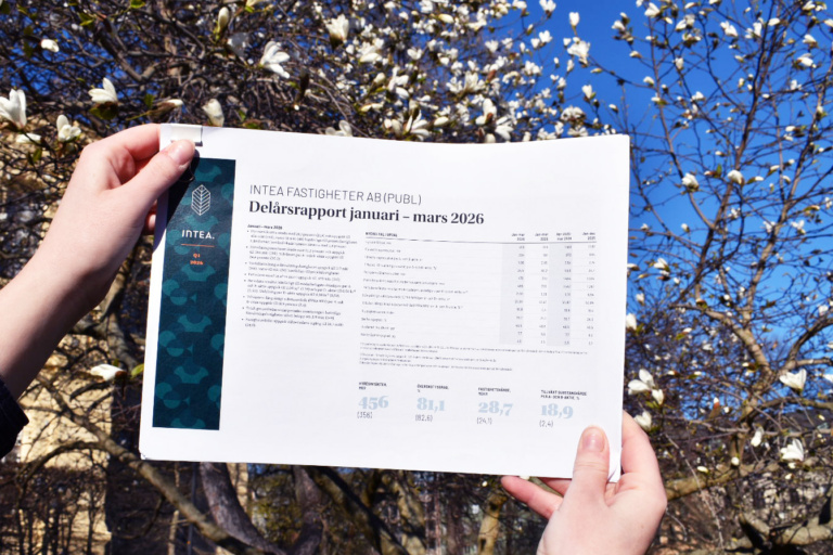 - I januari 2026 förvärvade Intea en fastighet med ett pågående projekt i Uppsala. Vid färdigställande kommer den uthyrningsbara arean att uppgå till cirka 6 600 kvm och hyras av en statlig myndighet. Underliggande fastighetsvärde i transaktionen uppgick till 160 mkr. Den totala investeringen, inklusive förvärvet, beräknas uppgå till 266 mkr.